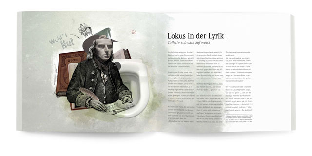 So begründete Marcel Duchamp mit seinem Werk „Fountain“ („readymade“) eine neue Epoche in der Kunst. Für den Wiener Künstler Friedensreich Hundertwasser wurde extra ein WC in Kawakawa (Nordinsel Neuseelands) gebaut. Im Film „Trainspotting“ wird in einer Toilette abgetaucht und in Hitchcock Filmen ist sie ein Ort des Schreckens. Goethe, Schiller oder Brecht dichteten über sie und sogar auf ihr.